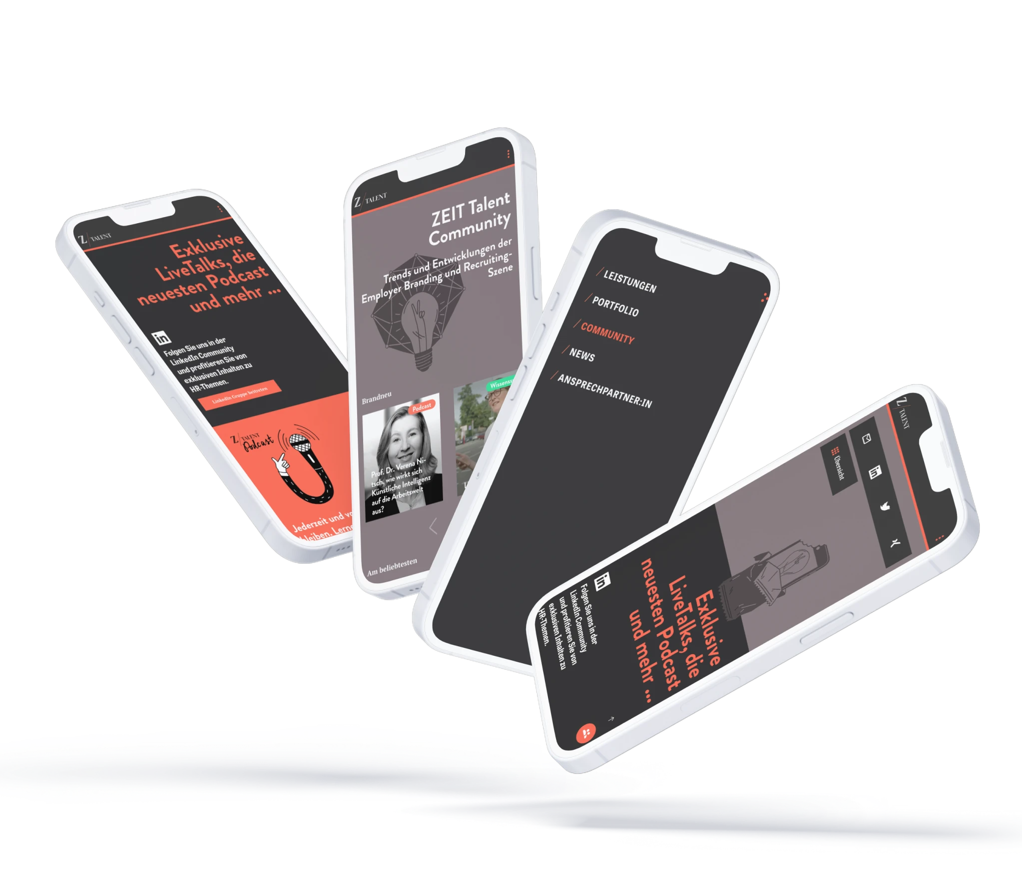 Mobile Mockups der Zeit-Talent Website